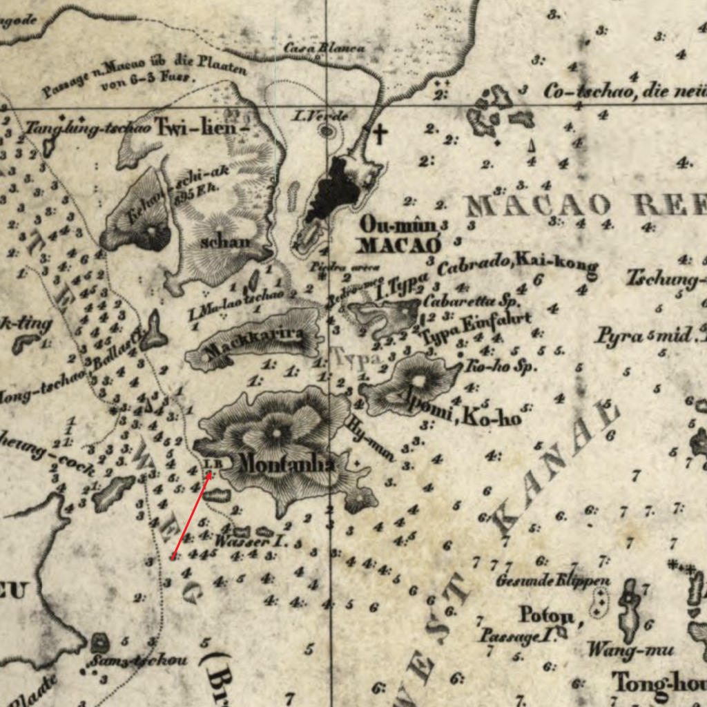 读者们想必注意到了,云雀湾所在的岛屿,地图上称为“Montanha”,这又是指什么呢?事实上,“Montanha”乃是葡语,意为“山”;而这座岛,实际上就是当时的大横琴岛,今属广东省珠海市香洲区横琴镇。